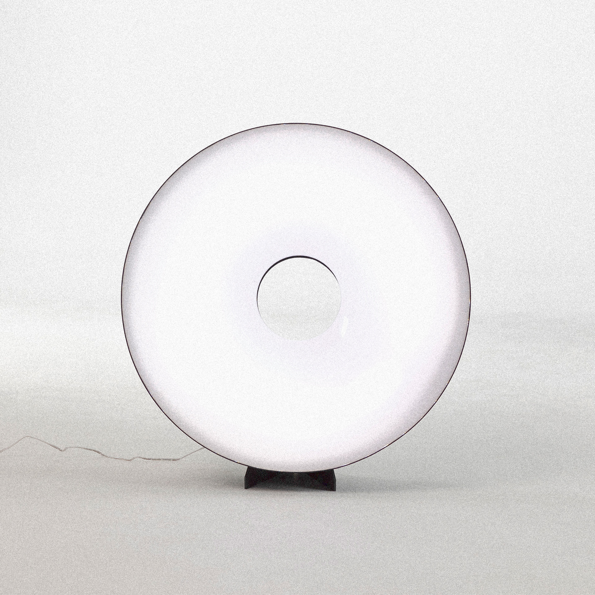 This elegant light features a bell-shaped opal acrylic interior that gently diffuses light in all directions. The central hole creates a striking highlight effect while reducing the overall weight of the design. Versatile in its use, it can be mounted on the ceiling or placed on the floor